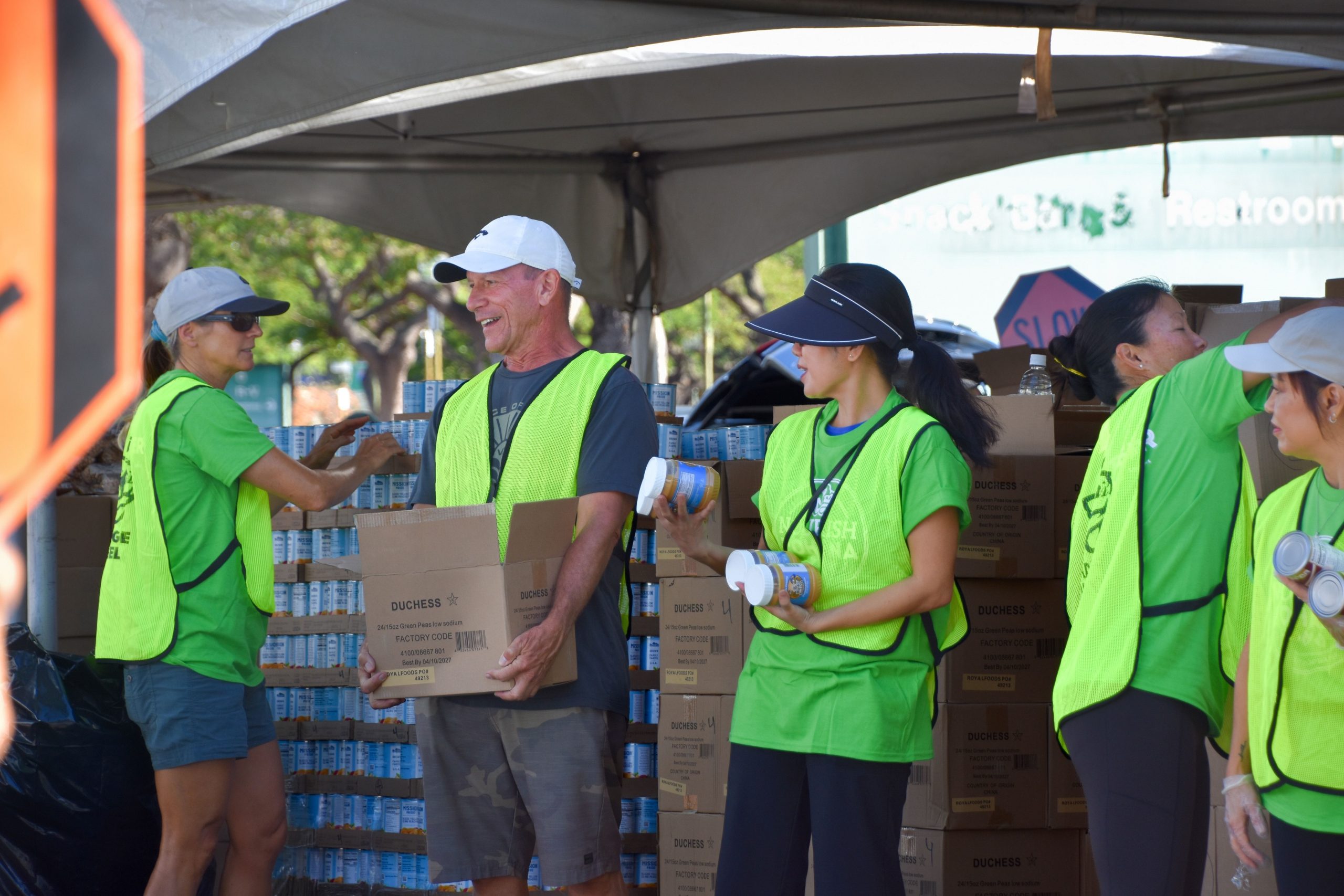 Along with our network of hunger-relief partners, Hawai‘i Foodbank immediately jumped into action – sourcing additional food and recruiting more volunteer support to meet the growing need. Multiple large distributions and pop-ups were held across the island daily, each serving between 400 and 2,000 households.