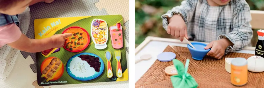 Keiki Kaukau was established by Hawaiʻi mom April Hail when she took a break from high school teaching to raise her growing family. “It was in that time I had noticed that there was this absence of culturally informed toys that reflected all the beauty and diverse cultures of Hawaiʻi — specifically the food thing because my two-year-old was really into playing pretend food,” she explains.